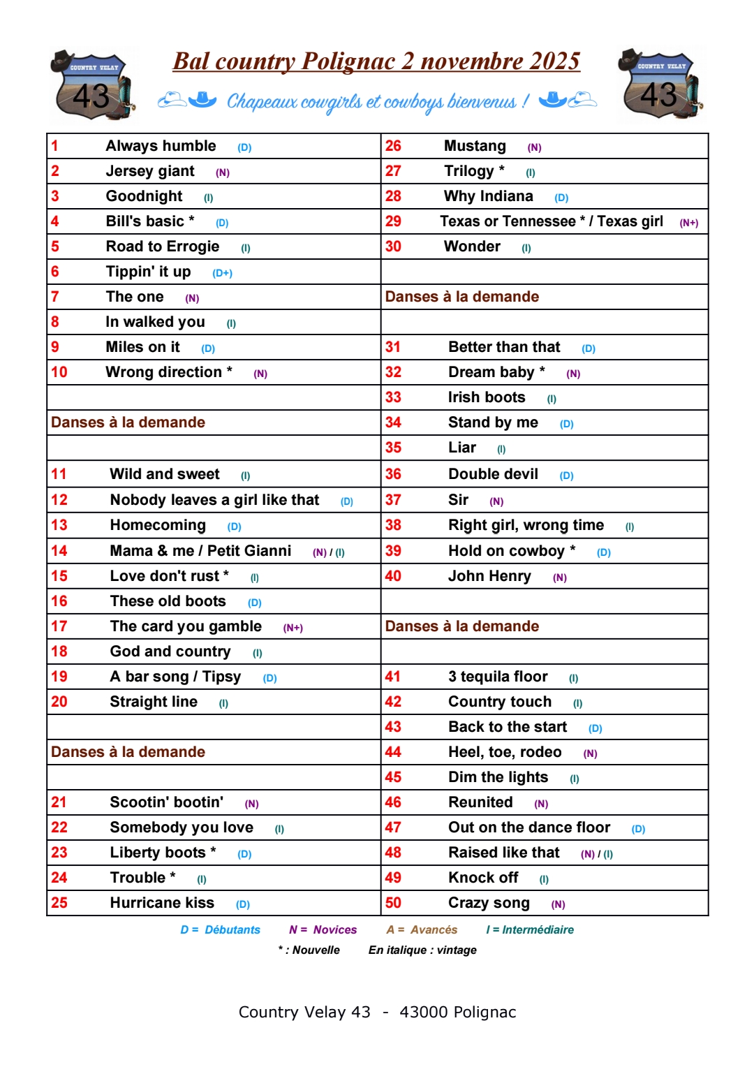 Le Vendredi 13/02/2026 à Polignac (43) par Country Velay 43 |