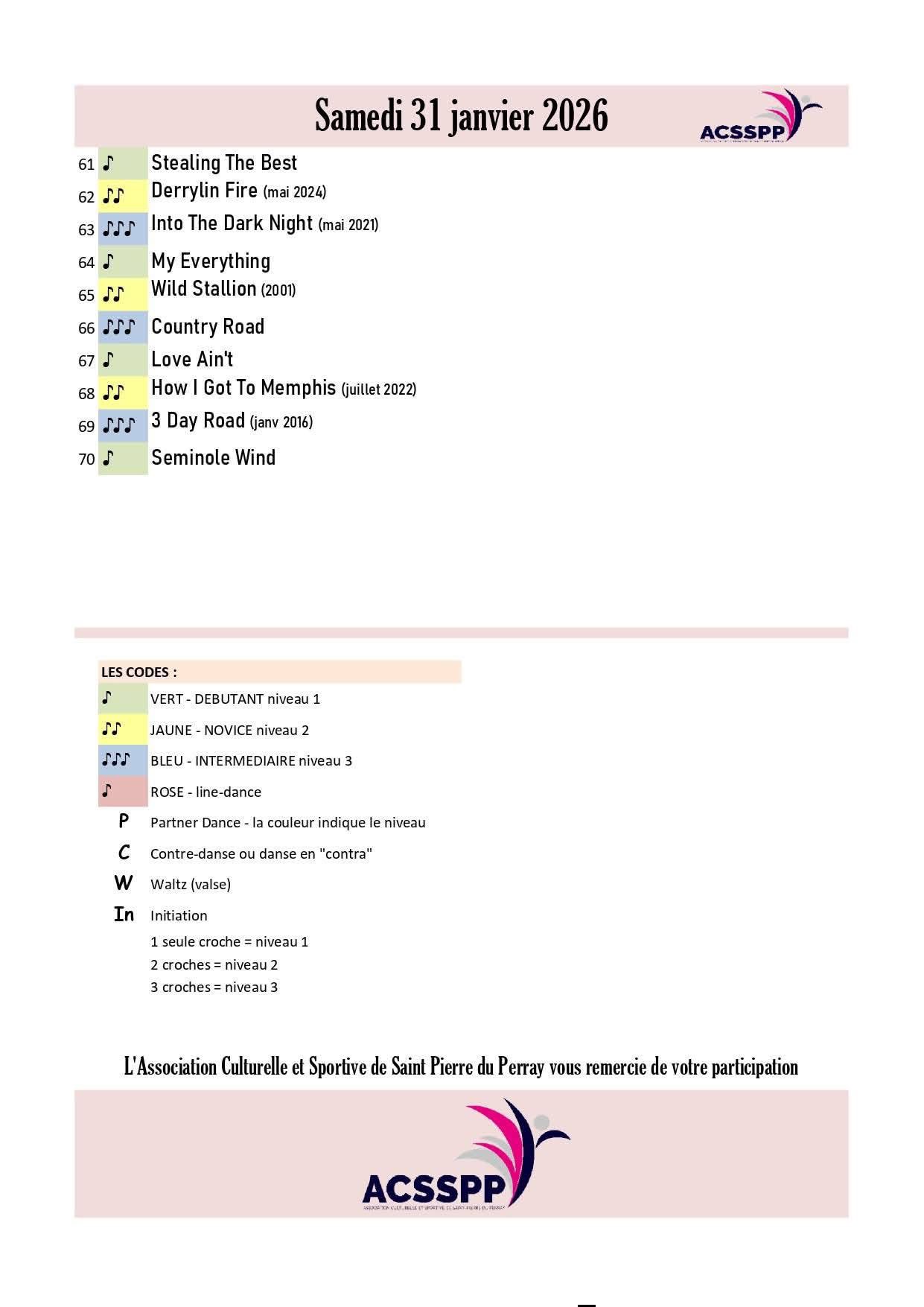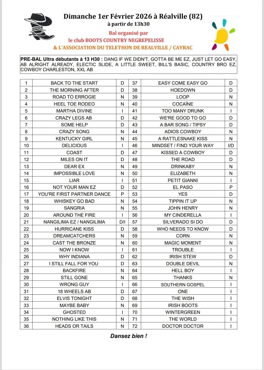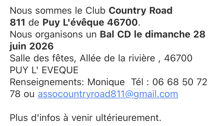 Le Dimanche 01/02/2026 à Pomport (24) par Castle Country Dancer’s : |