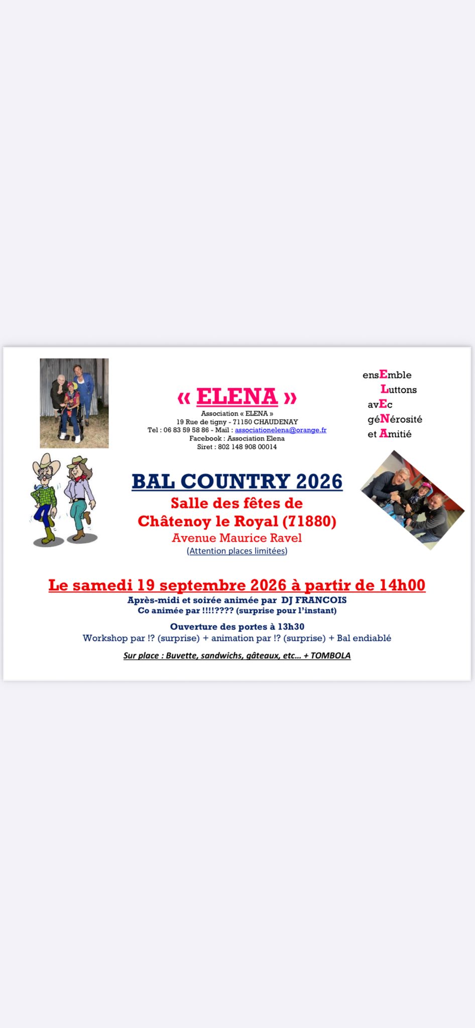 Le Samedi 19/09/2026 à Châtenoy le Royal (71) par Association ELENA |