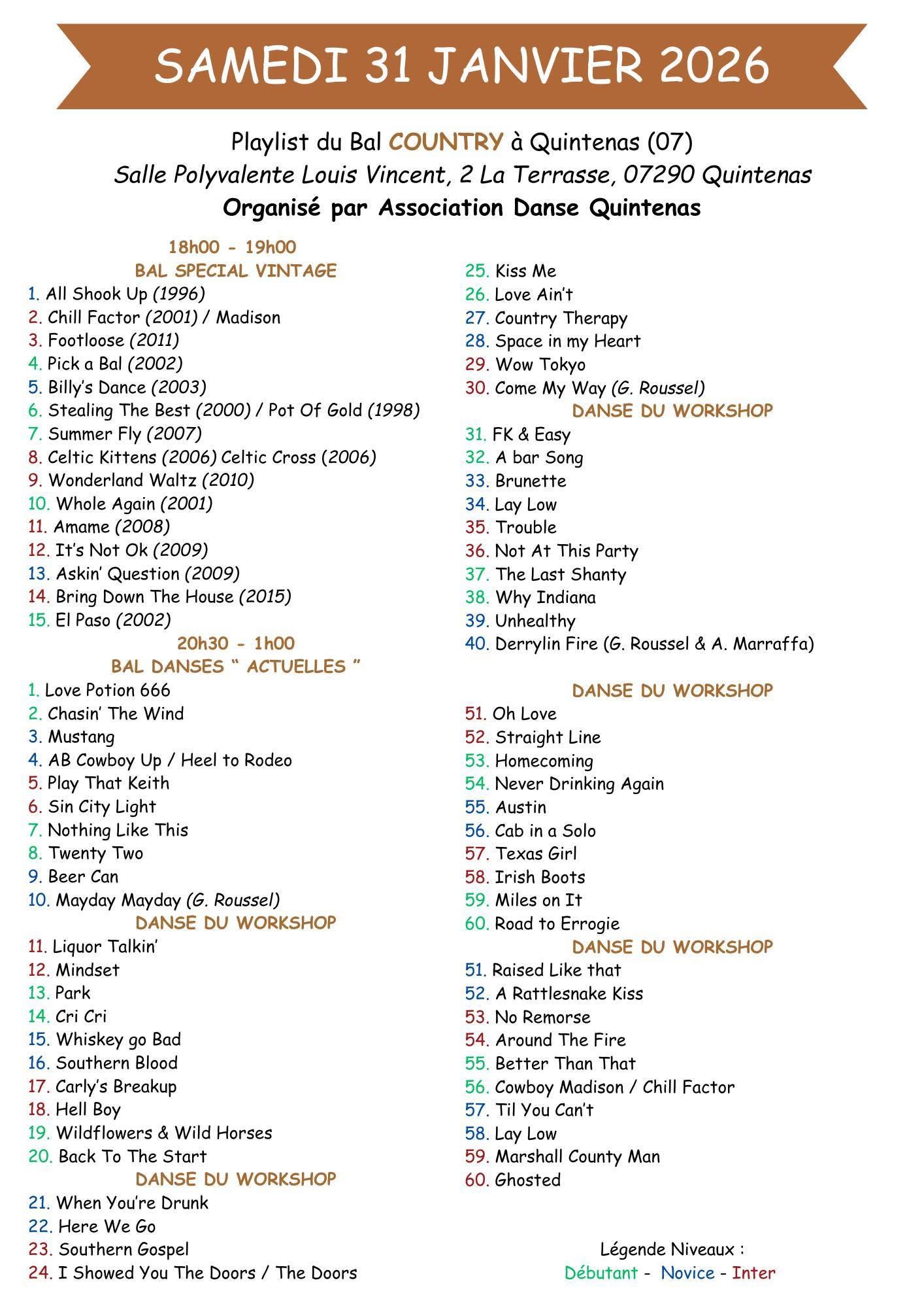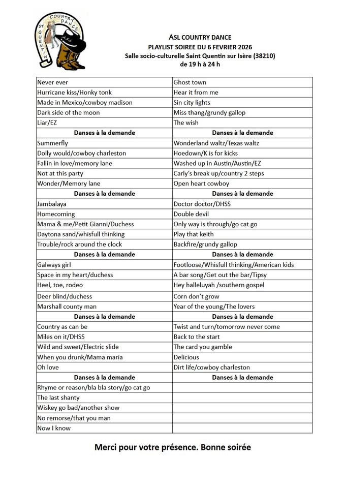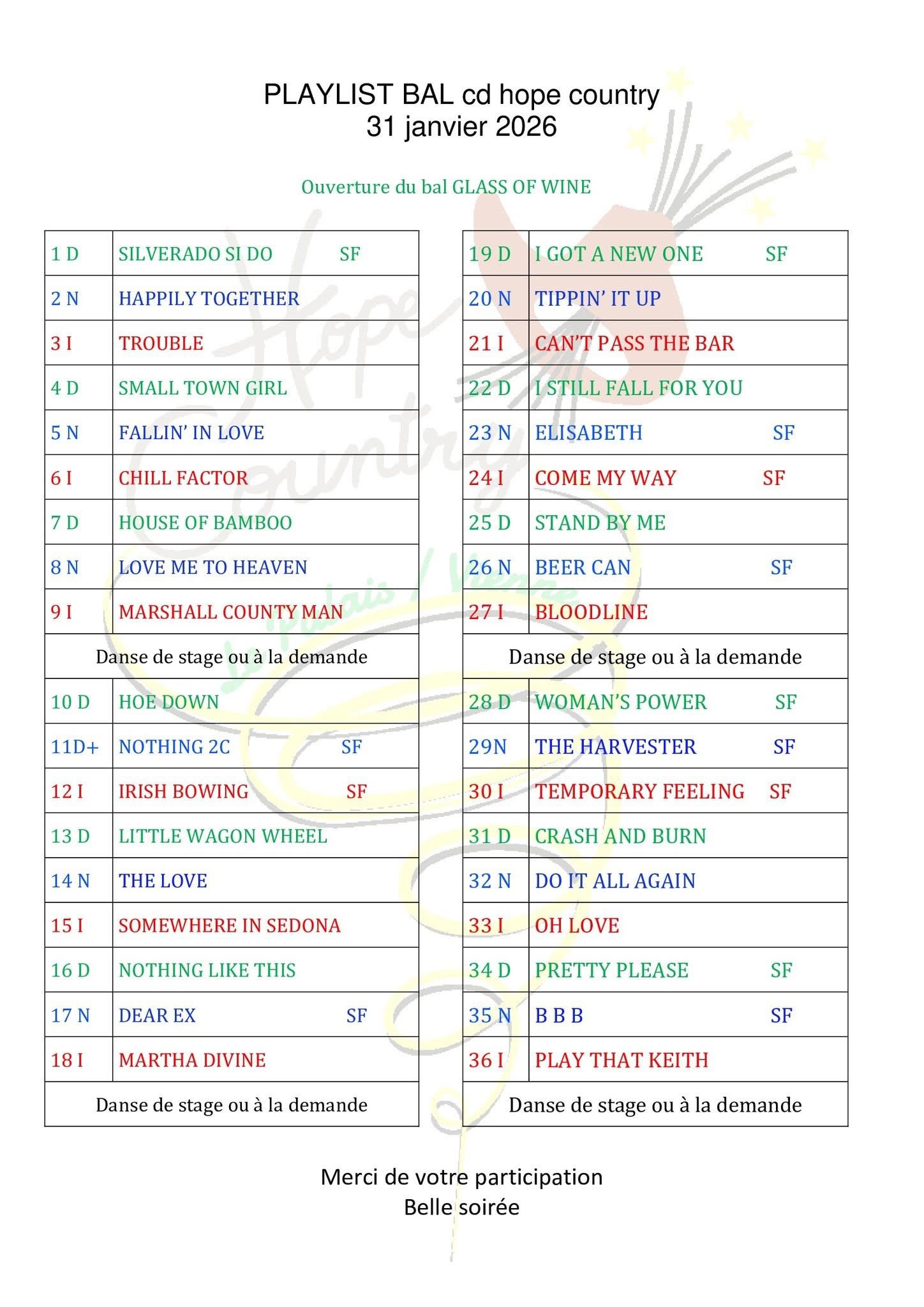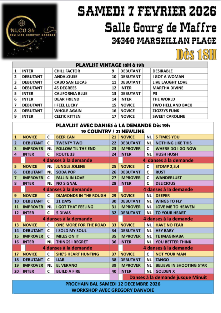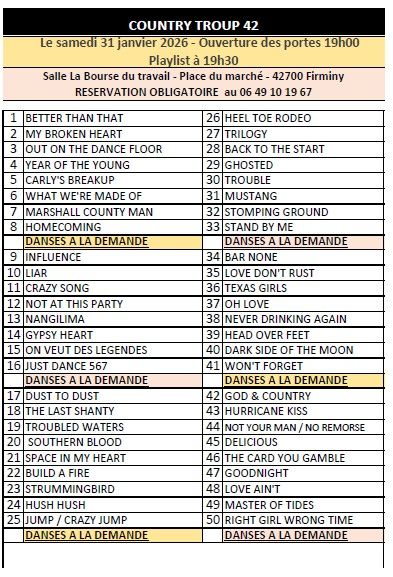 Le Samedi 31/01/2026 à ANNEQUIN (62149) par LOVE COUNTRY DANCE CLUB |