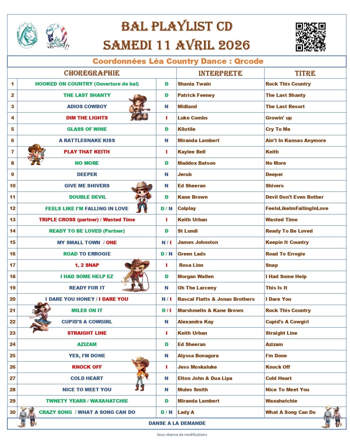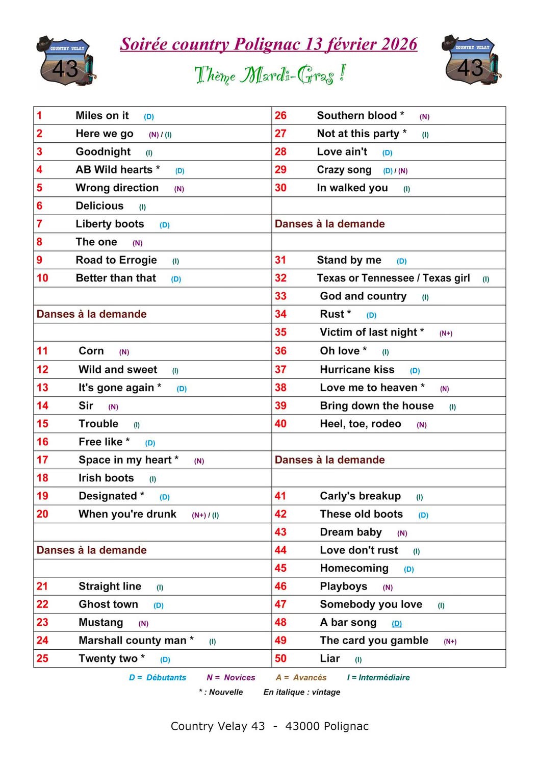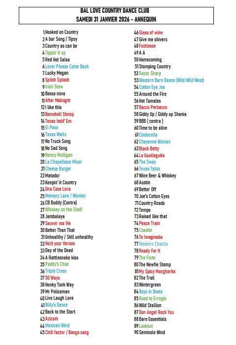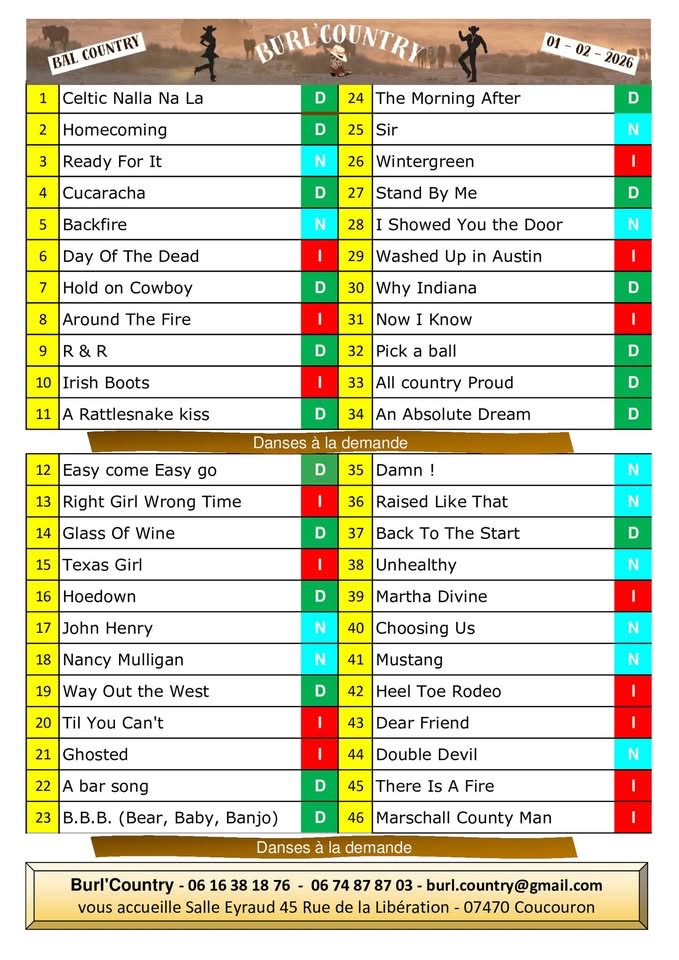Le Samedi 31/01/2026 à ANNEQUIN (62149) par LOVE COUNTRY DANCE CLUB |