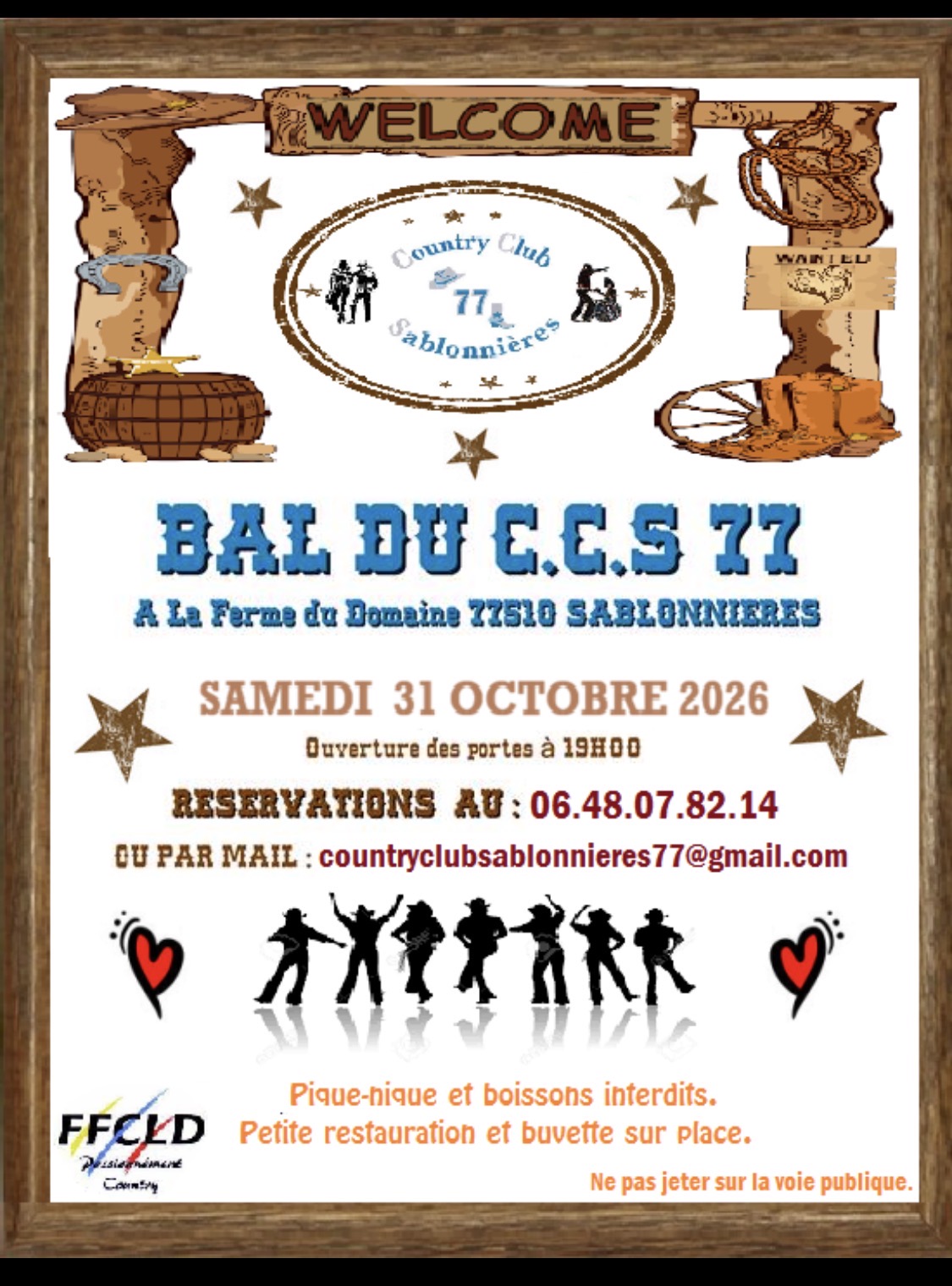 Le Samedi 31/10/2026 à SABLONNIERES (77) par Country club SABLONNIÈRES |
