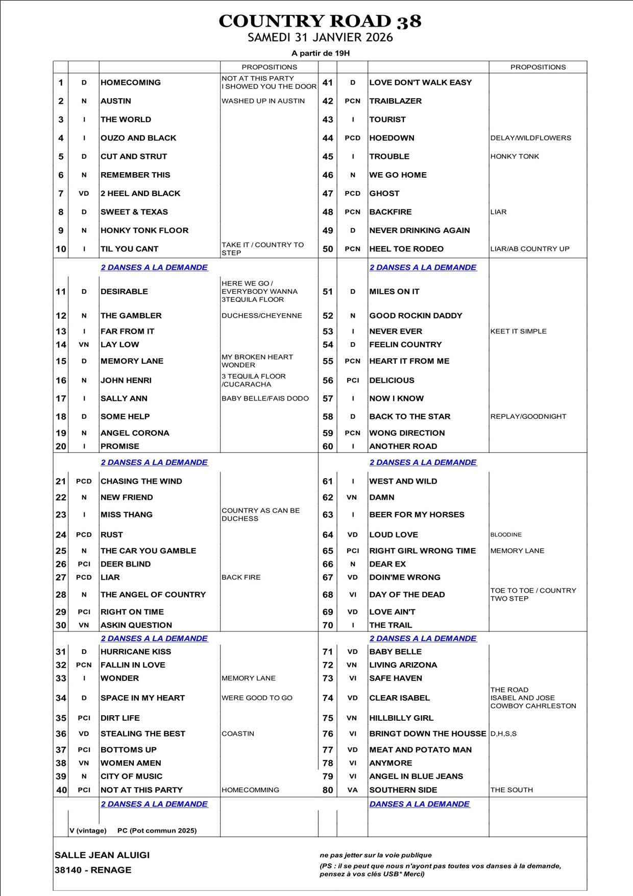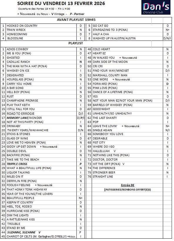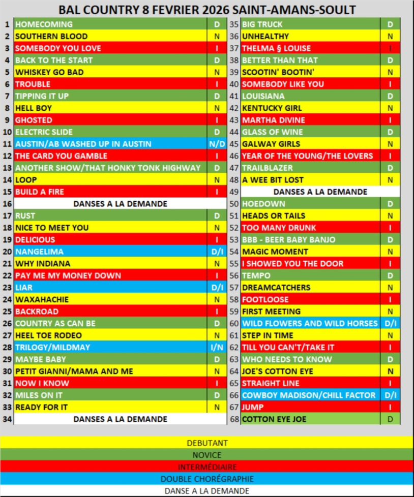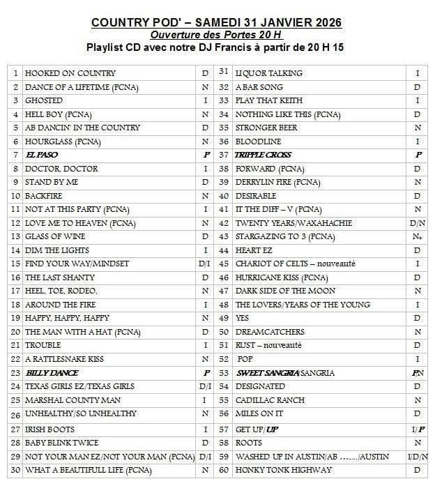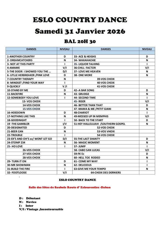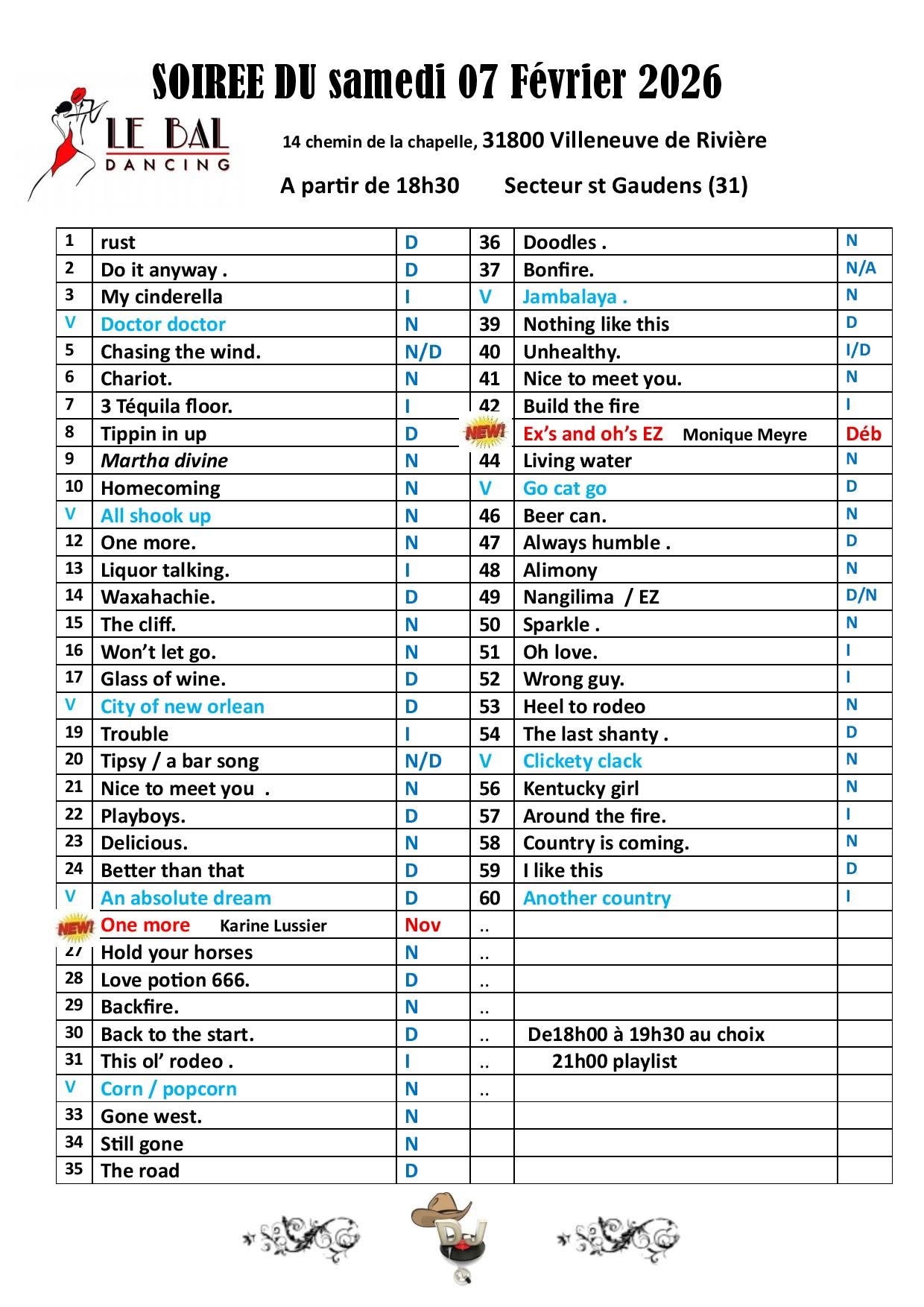 Le Samedi 31/01/2026 à SAINT ESTEVE (66) par DALLAS COUNTRY DEL MONESTIR |