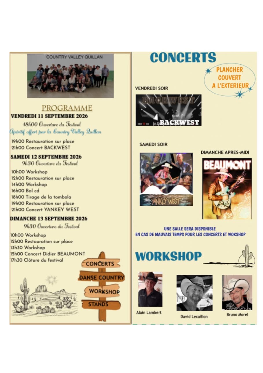 Le Samedi 12/09/2026 à Quillan (11) par COUNTRY VALLEY QUILLAN / Yankey West |