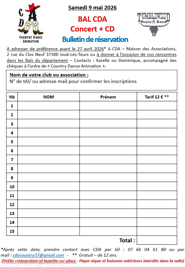 Le Samedi 26/09/2026 à Cozes (17120) par Coz’country dancers |