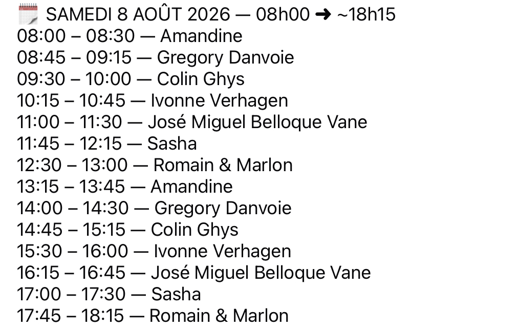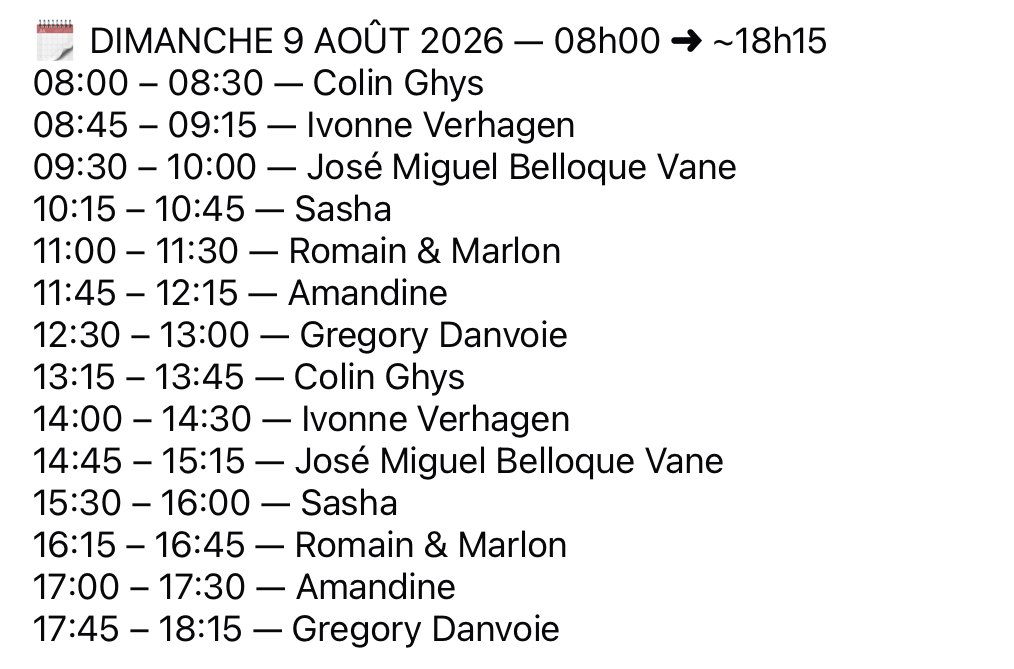 Le Vendredi 09/10/2026 à Santa Susanna (Espag) par / Bruno Legrizzly / Vivie & Cristophe Lajoie - Angel Vidal - Adela Robak - Audrey Rose - Stefano Civa - Patricia Tantillo |