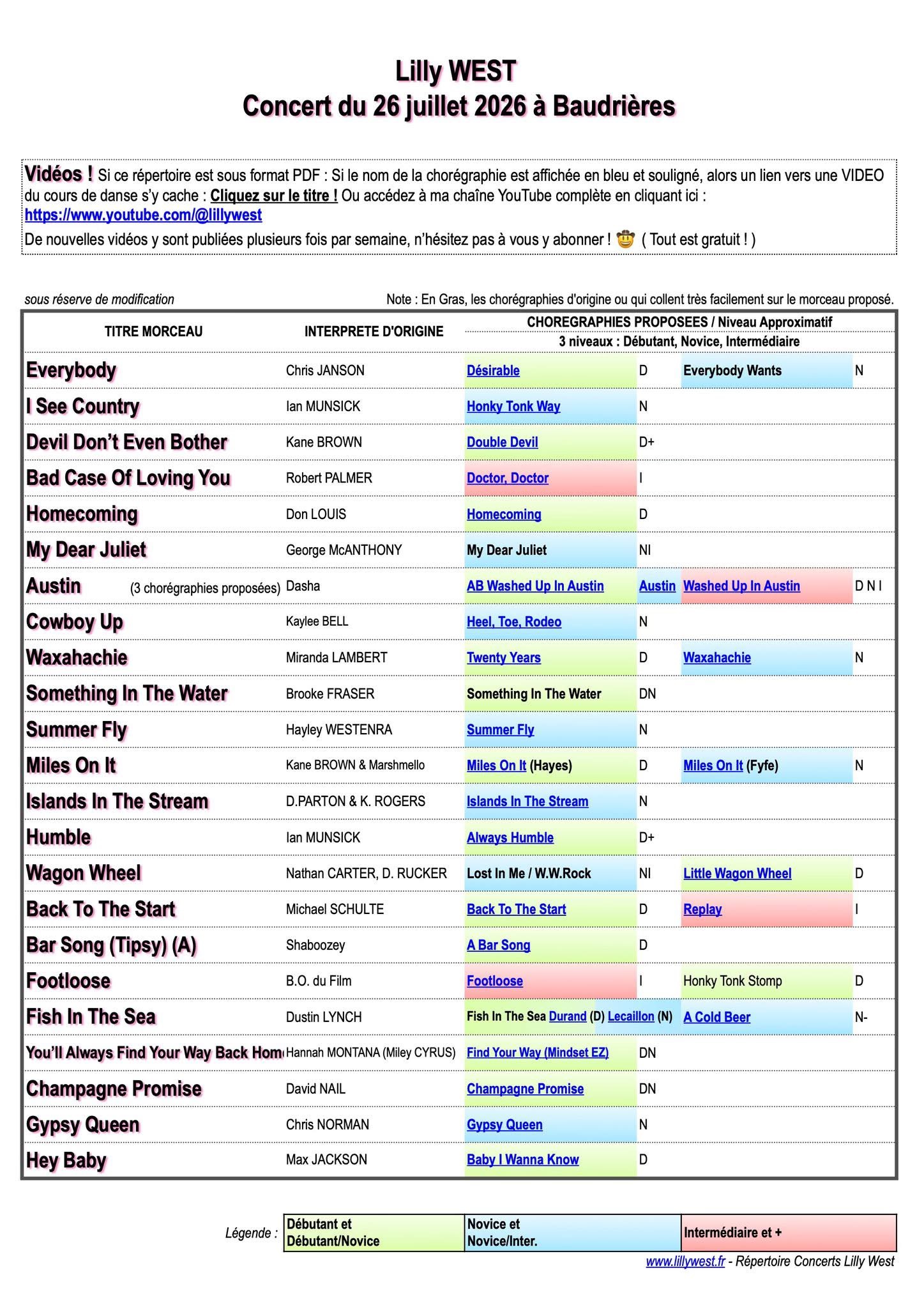 Le Samedi 05/09/2026 à Cortaillod (Suiss) par / Texas Sidestep / Chrystel Durand - Bryan Bogey |