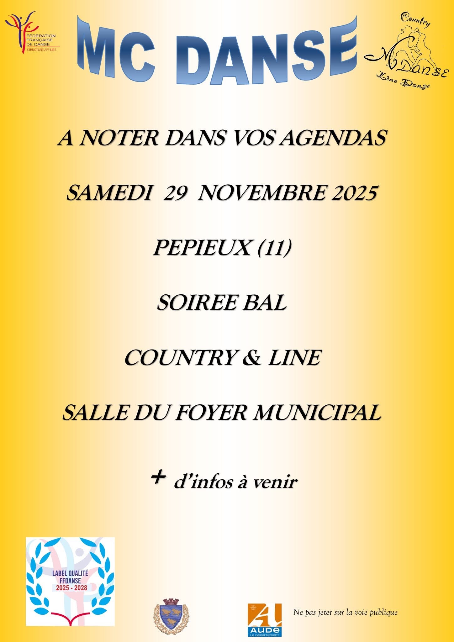 Le Samedi 29/11/2025 à PEPIEUX (11) par MC DANSE ![]() |
