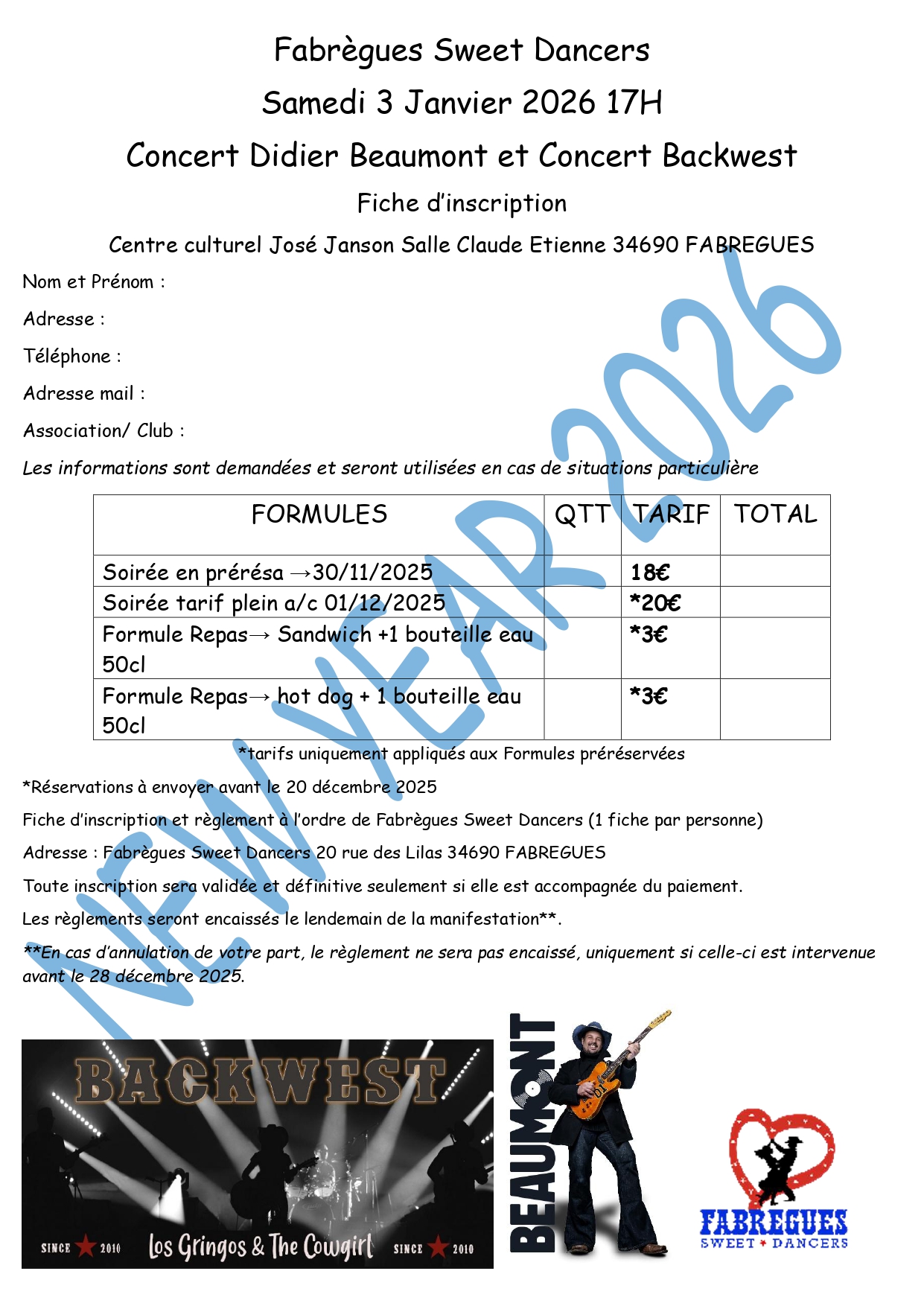 Le Samedi 03/01/2026 à Fabrègues (34) par Fabrègues Sweet Dancers / Didier Beaumont et Backwest ![]() ![]() |